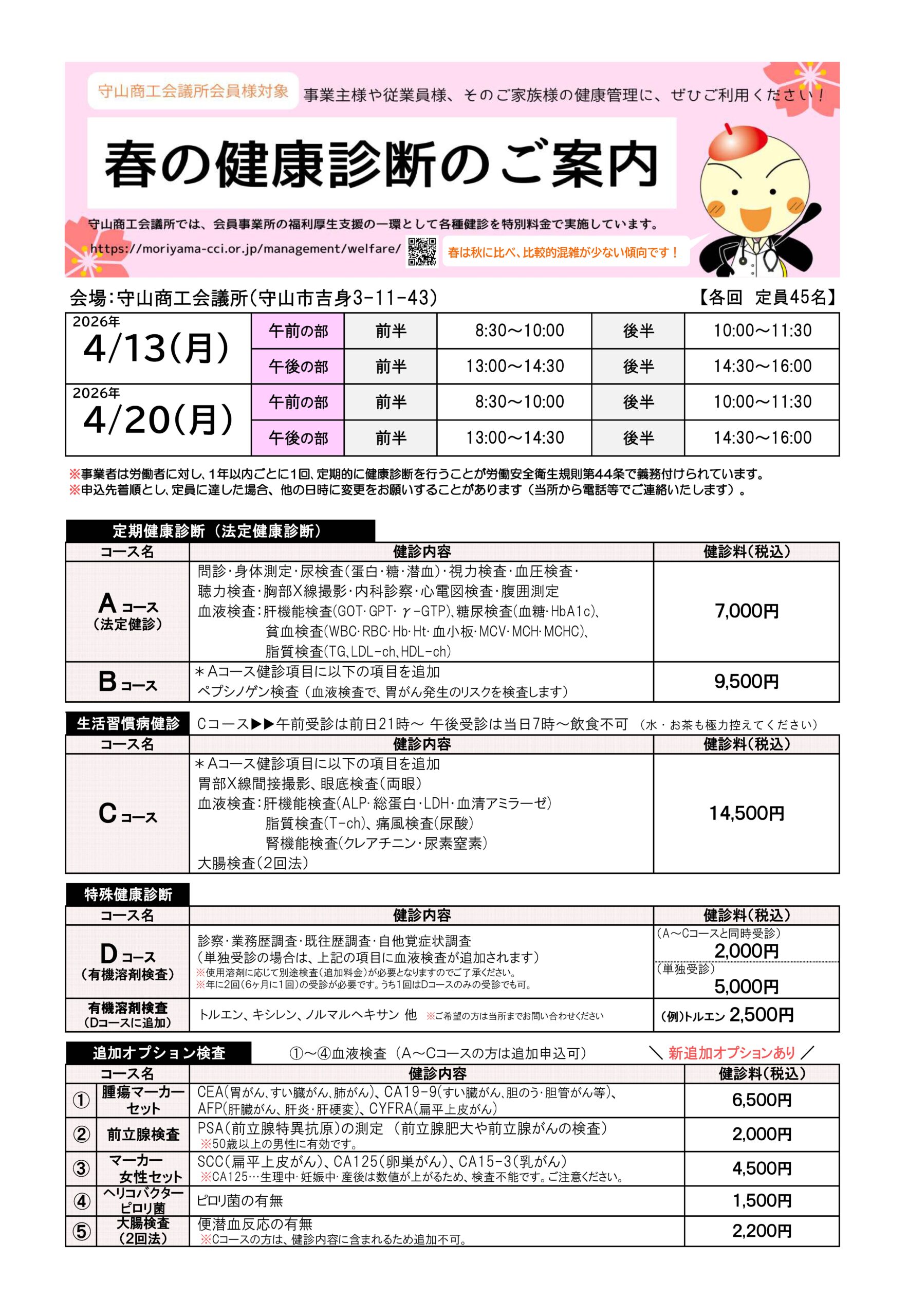 守山商工会議所では、会員事業所の福利厚生支援の一環として、各種健診を特別料金で実施しています。