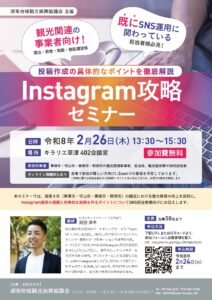 2/26㊍Instagram攻略セミナー【湖南地域観光振興協議会からのお知らせ】新着!!